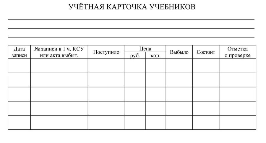 Бланк Учетная карточка учебников УЧИТЕЛЬ КЖ-732