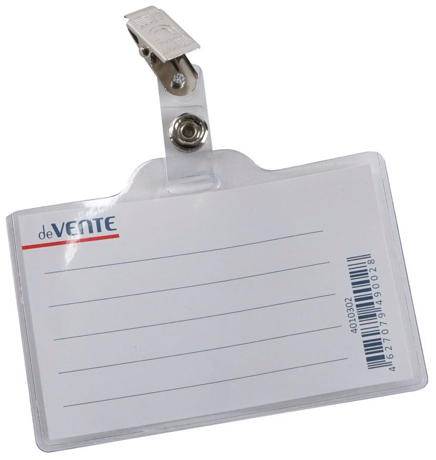 Бейдж "deVENTE" 60x90 мм, прозрачный с клипом
