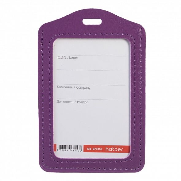 Бейдж вертикальный 72х112мм филетовый экокожа HATBER NB_079259