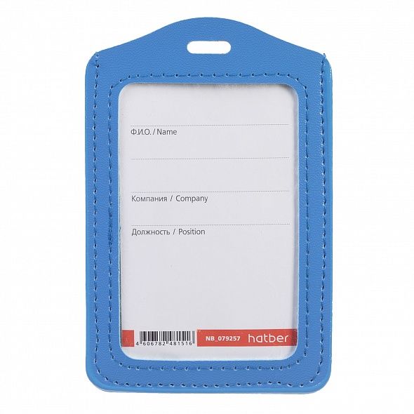 Бейдж вертикальный 72х112мм голубой экокожа HATBER NB_079257