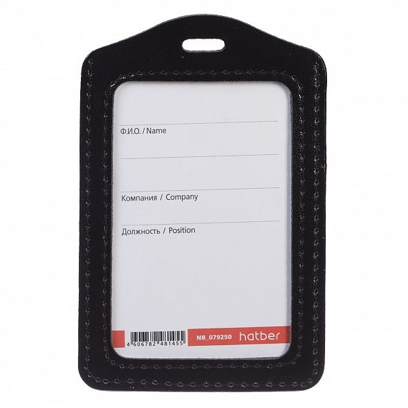 Бейдж вертикальный 72х112мм черный экокожа HATBER NB_079250