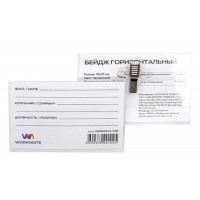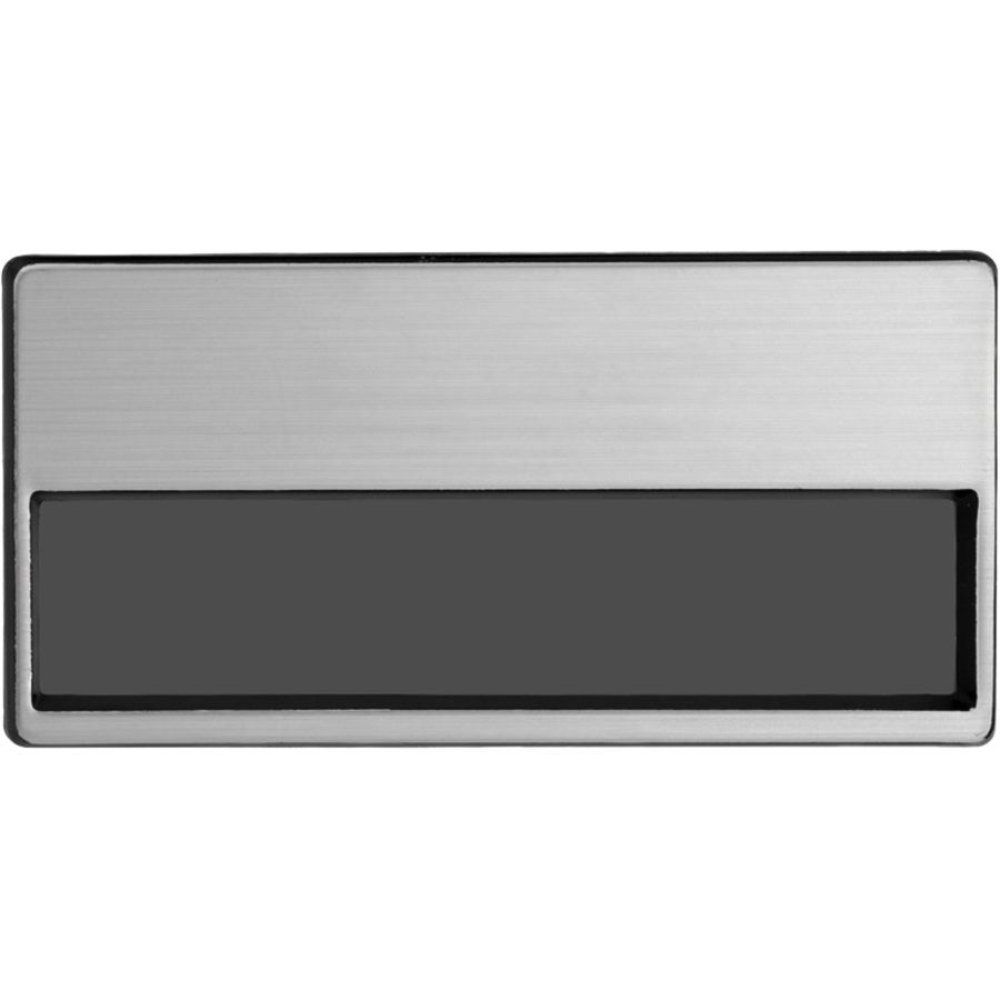 Бейдж "deVENTE" 68x33 мм, горизонтальный, из твердого пластика, с фронтальной металлической пластиной и прозрачным окном 61x13 мм, на магните, серебристый