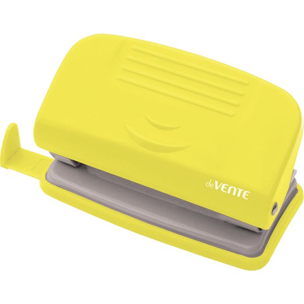 Дырокол "deVENTE. Neon" (10 листов) пластиковый с линейкой, в картонной коробке, неоновый желтый.