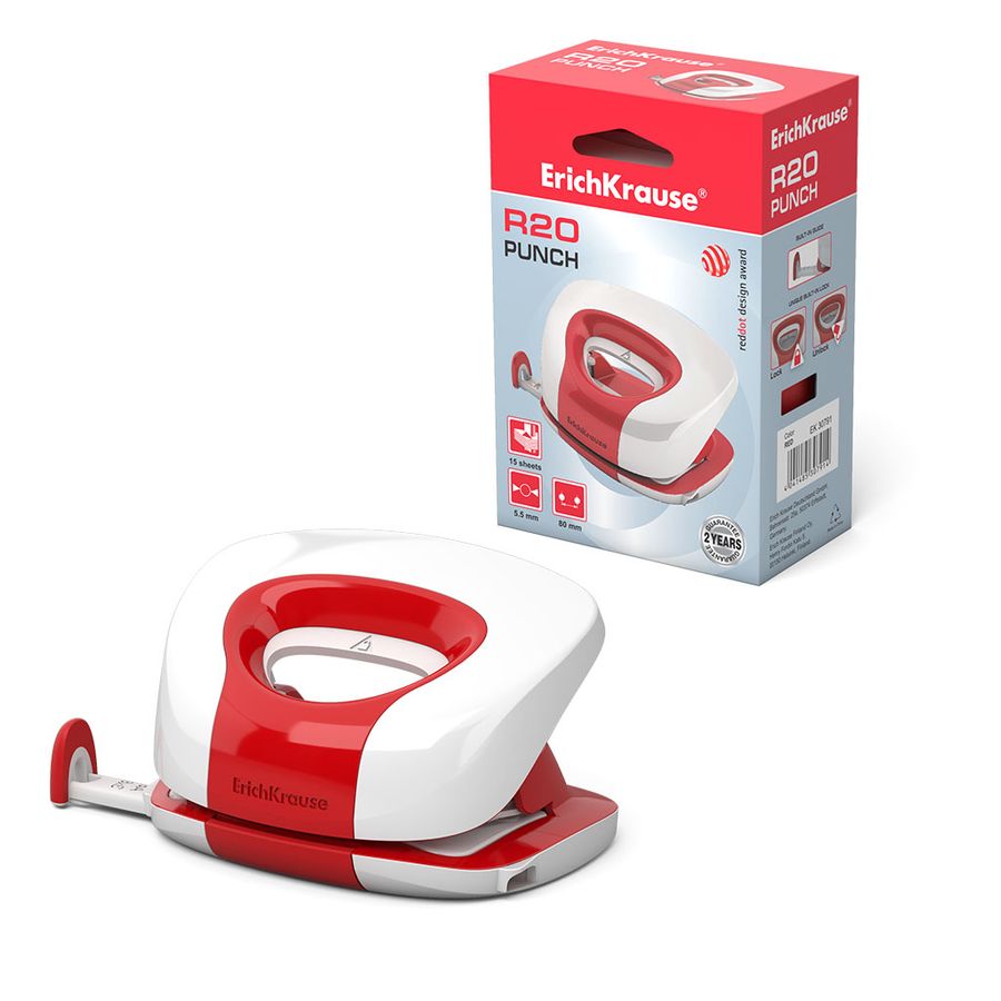 Модель премии Red Dot Design Award. С уникальной конструкцией фиксатора дырокола для хранения в сложенном положении. Пробивает до 15 листов. Имеет резервуар для конфетти и линейку для выбора форматов. Mеханизм изготовлен из высококачественной стали. Гарантия на механизм 2 года. Остро заточенные ножи позволяют с легкостью пробивать максимально возможное количество листов. Пластиковая основа дырокола не царапает поверхность стола. Диаметр прокола 5.5мм. Расстояние между проколами 80мм.
