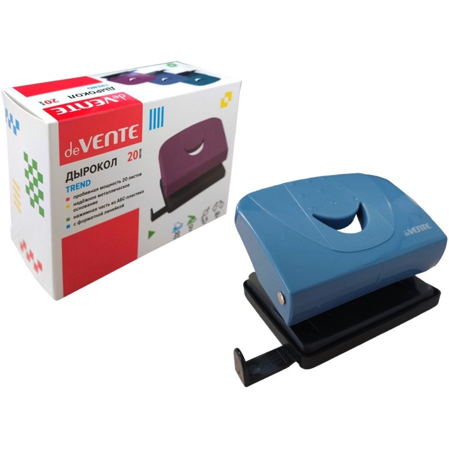 Дырокол "deVENTE. Trend" (20 листов) пластиковый, с линейкой, в картонной коробке, пепельно-синий