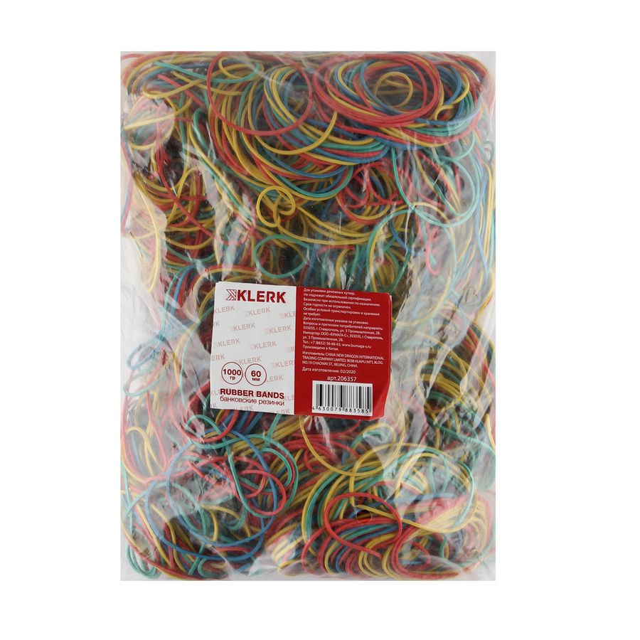 Банковская резинка 1000г диаметр 60мм KLERK 206357 ассорти