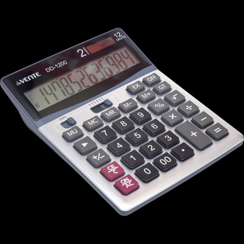 Калькулятор настольный "deVENTE" DD-1200, 140x178x46, 12 разрядный, металлическая панель, автоматическое вычисление квадратного корня, процентов, наценки, функция "общая сумма" замена введенных операторов местами, клавиша "00" коррекция последнего введённого значения, двойное питание, крупные клавиши, черный, в картонной коробке.