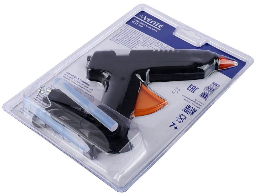 Пистолет клеевой + 2 клеев. стержня d=11мм блистер deVENTE 4181501