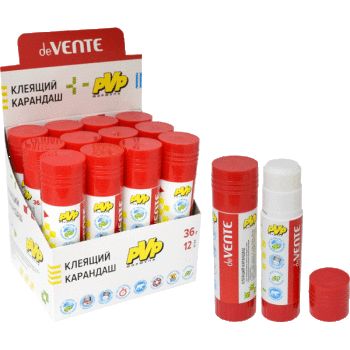 Клеящий карандаш PVP основа "deVENTE" 36 г (быстросохнущий) в картонном дисплее с пластиковым поддоном