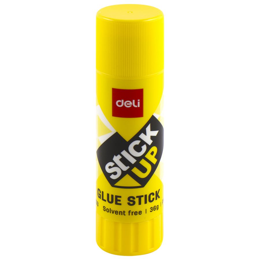Клей-карандаш Deli Stick UP 36 гр. Прозрачный клей-карандаш с улучшенной формулой. Клей-карандаш склеивает изделия из бумаги, картона. Текстура гладко и равномерно ложится на поверхность, обеспечивая хорошее склеивание. Бумага не увлажняется, проклеивается ровно. Нетоксичен, не содержит растворителей. Безопасен для детей. Надежный колпачок предохраняет клей от высыхания.