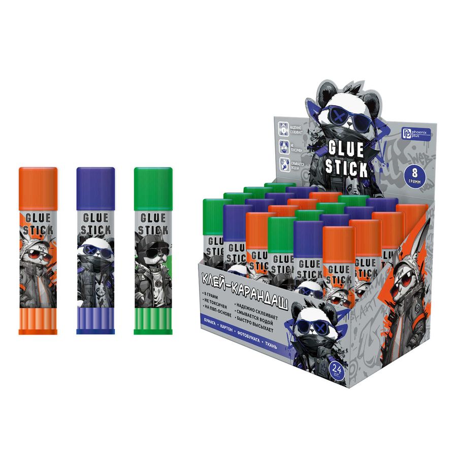 Клей-карандаш , арт.70042/ 24 КРУТЫЕ ЗВЕРЯТА (шоу-бокс, 24 шт., ассорти, вес клея: 8 грамм, PVP основа, белый, склеиваемые материалы: бумага, картон, текстиль, фотобумага, полноцветный дизайн,
