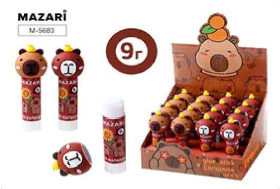 Клей карандаш 9г PVA Капибара ассорти MAZARI M-5683