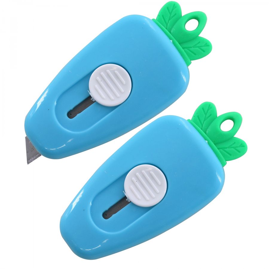 Нож канцелярский Alingar, 9 мм, детский мини, с механической фиксацией лезвия, корпус в форме морковки 7 см, ассорти, блистер