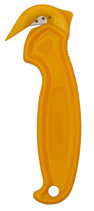 Основная функция безопасного складского ножа BURO - удаление упаковки. Острое лезвие в безопасном корпусе легко разрежет скотч, вскроет пленочное покрытие, перережет шпагат. Незаменимый инструмент грузчиков и работников торговых залов. Ручка, изготовленная из плотного красного пластика, надежно держит складывающееся изогнутое лезвие. Механизм фиксации исключает риск травмироваться. Ручка имеет анатомическое строение, удобное для использования правшами и левшами. Отверстие в ручке позволяет подвешивать инструмент в нужном месте. - Тип механизма фиксации: безопасный - Материал корпуса: пластик - Эргономичный дизайн: да - Отверстие для подвеса: да - Цвет корпуса: желтый - Упаковка: пакет с европодвесом