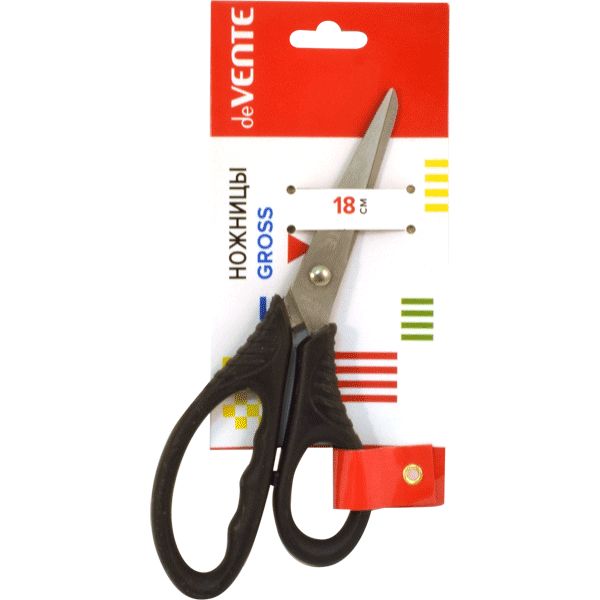 Ножницы канцелярские "deVENTE. Gross" 18 см, усиленные пластиковые кольца, в картонном блистере, черные