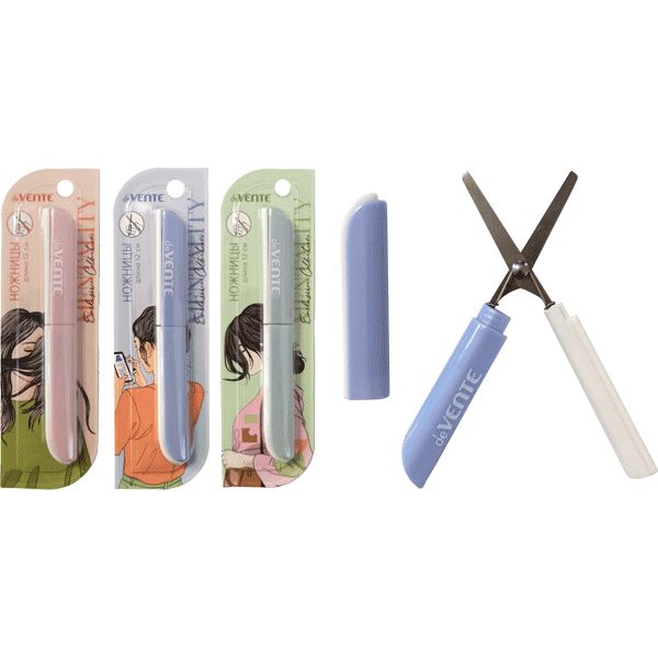 Ножницы канцелярские "deVENTE. Mentality" 12 см, складные (дорожные) лезвия из нержавеющей стали, пластиковые кольца, защитный футляр, цвета ассорти, в картонном блистере