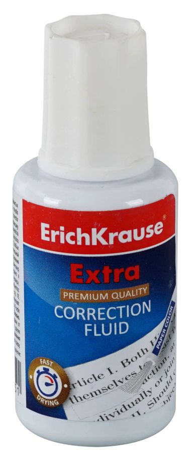 Дополнительные характеристики: в пластиковом флаконе с кисточкой. Быстросохнущий, на химической основе. Незаметен на ксерокопиях. Объём 20 мл.