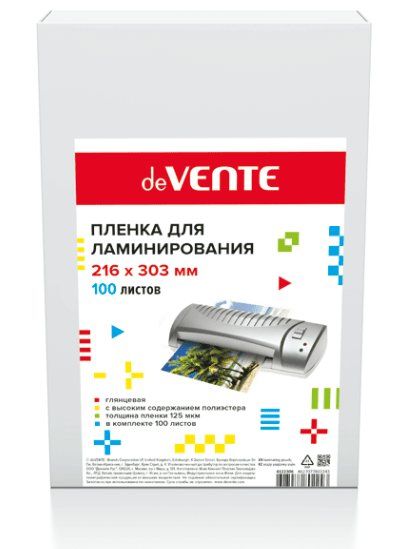 Пленка для ламинирования "deVENTE" A4, толщина 125 мкм, 100 л