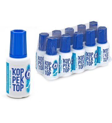 Штрих водный КОРРЕКТОР, 20 г с кисточкой. Корректирующая жидкость на водной основе. Обладает хорошей укрывистостью, удобная кисточка. Не содержит вредных для здоровья компонентов. Температура при транспортировке до –40 °С. Штрих-код на каждой единице товара, на минимальной упаковке и на коробе.