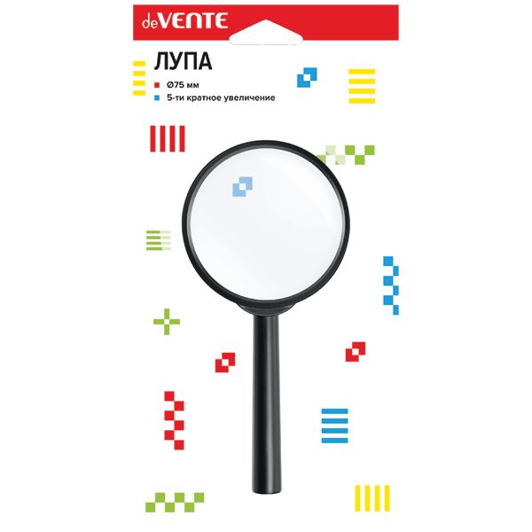 Лупа "deVENTE" с пятикратным увеличением d=75 мм, стеклянная линза, пластиковый корпус, в картонном блистере.