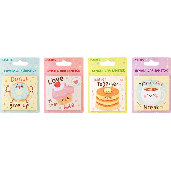 Клейкая бумага для заметок "deVENTE. Dessert" 75x75 мм, 30 листов, офсет 80 г/м², печать 4+0, ассорти дизайнов, в картонном блистере и пластиковом пакете с европодвесом