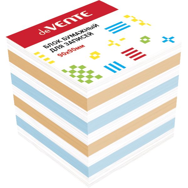 Куб бумажный для записей "deVENTE" 90x90x90 мм цветной, непроклеенный, офсет 100 г/м², белизна 92%