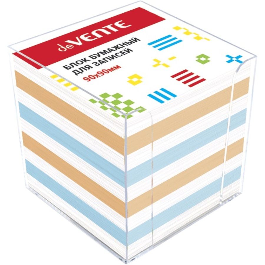 Куб бумажный для записей "deVENTE" 90x90x90 мм цветной, непроклеенный, офсет 100 г/м², белизна 92%, в прозрачной пластиковой подставке