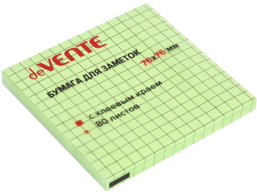 Клейкая бумага для заметок "deVENTE" 76x76 мм, 80 листов, офсет 75 г/м², зеленая в клетку