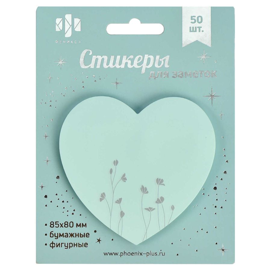Стикеры для заметок бумажные, 85х80 мм, 50 шт., арт. 65176 / 25 СЕРДЦЕ БИРЮЗОВОЕ (материал: дизайнерская бумага 80 г/м², цвет: бирюзовый; кол-во цветов: 1, кол-во каждого цвета: 50, форма: фигурная, декор: тиснение фольгой; наличие диспенсера: нет, особенности: фигурная вырубка; индивидуальная упаковка: подложка с европодвесом из мелованного картона + ПЭТ-пакет)