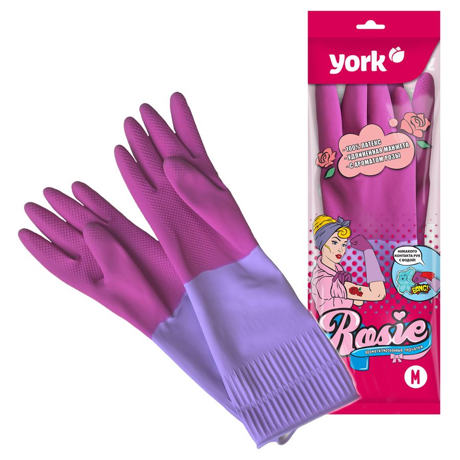 Перчатки резиновые р-р M Рози удлин.манжета х/б напыление ароматизированные York 92670