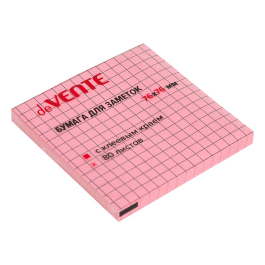 Клейкая бумага для заметок "deVENTE" 76x76 мм, 80 листов, офсет 75 г/м², розовая в клетку
