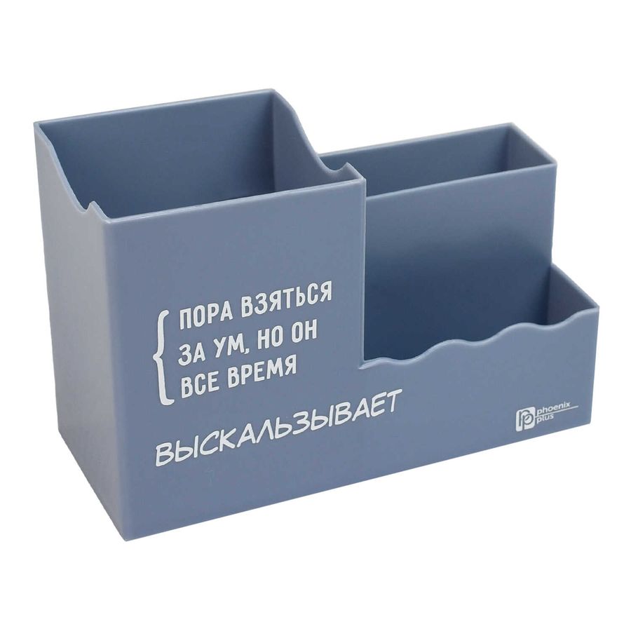 Подставка для канцелярских принадлежностей Феникс+, арт.69636/ 48 ЦИТАТА ДНЯ. ГОЛУБОЙ (15,5х10х7,3 см, полипропилен, цвет: голубой, белый, шелкография в одну краску, 3 отделение (-ия), ПЭТ-пакет).