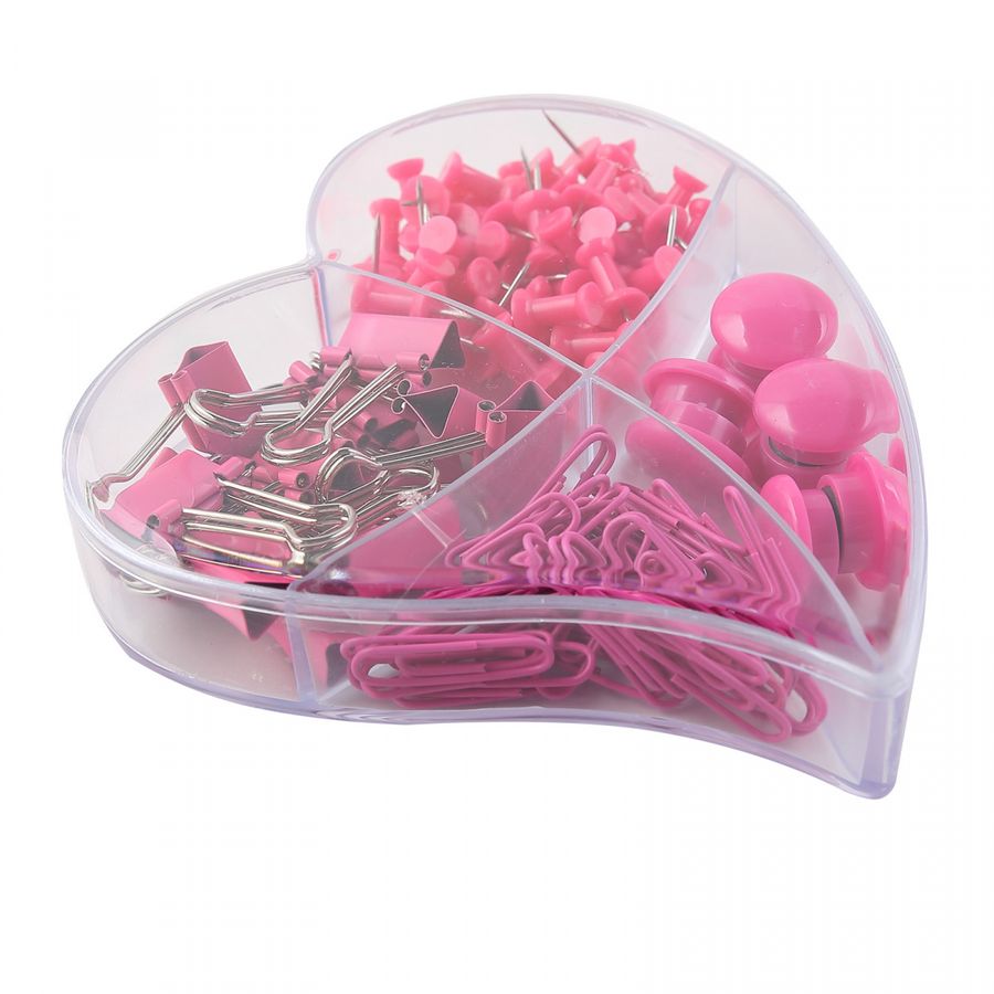 Набор канцелярских принадлежностей "deVENTE. Bloom Garden" (магниты цветные 20 мм – 8 шт, скрепки цветные 28 мм – 50 шт, кнопки силовые цветные – 50 шт, зажимы для бумаг цветные 19 мм – 12 шт) розовый 4133201
