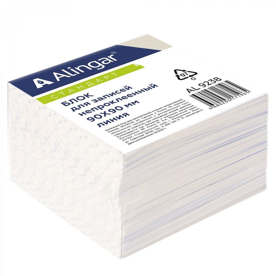 Блок бумажный для записи Alingar "Стандарт", 9*9*5 см, линия, непроклеенный, 60 г/м2 В современном мире существует множество способов для хранения информации. Для того, что бы записывать заметки, напоминания и пр. многие предпочитают пользоваться специальной бумагой для заметок разных размеров. Блоки имеют эстетически привлекательный внешний вид, отличающийся красочным оформлением.
