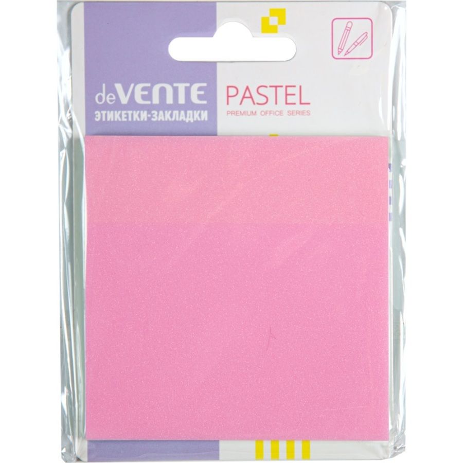 Самоклеящиеся этикетки-закладки "deVENTE. Pastel" пластиковые прозрачные, искрящиеся, 76x76 мм, 50 листов, в пластиковом пакете с европодвесом, розовые