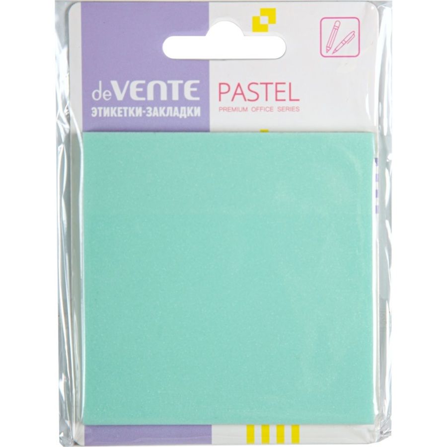 Самоклеящиеся этикетки-закладки "deVENTE. Pastel" пластиковые прозрачные, искрящиеся, 76x76 мм, 50 листов, в пластиковом пакете с европодвесом, изумрудные