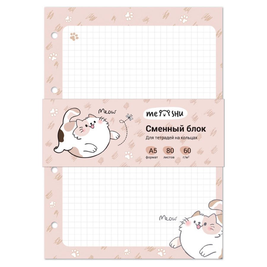Сменный блок для тетрадей с кольцевыми механизмами. Формат А5, 80 листов. Офсетная бумага плотность 60 г/м² в клетку, с дизайнерским блоком. Листы скреплены стрип-лентой и так же упакованы в т/у пленку. Дизайнерский блок, сделает ваш день ярче