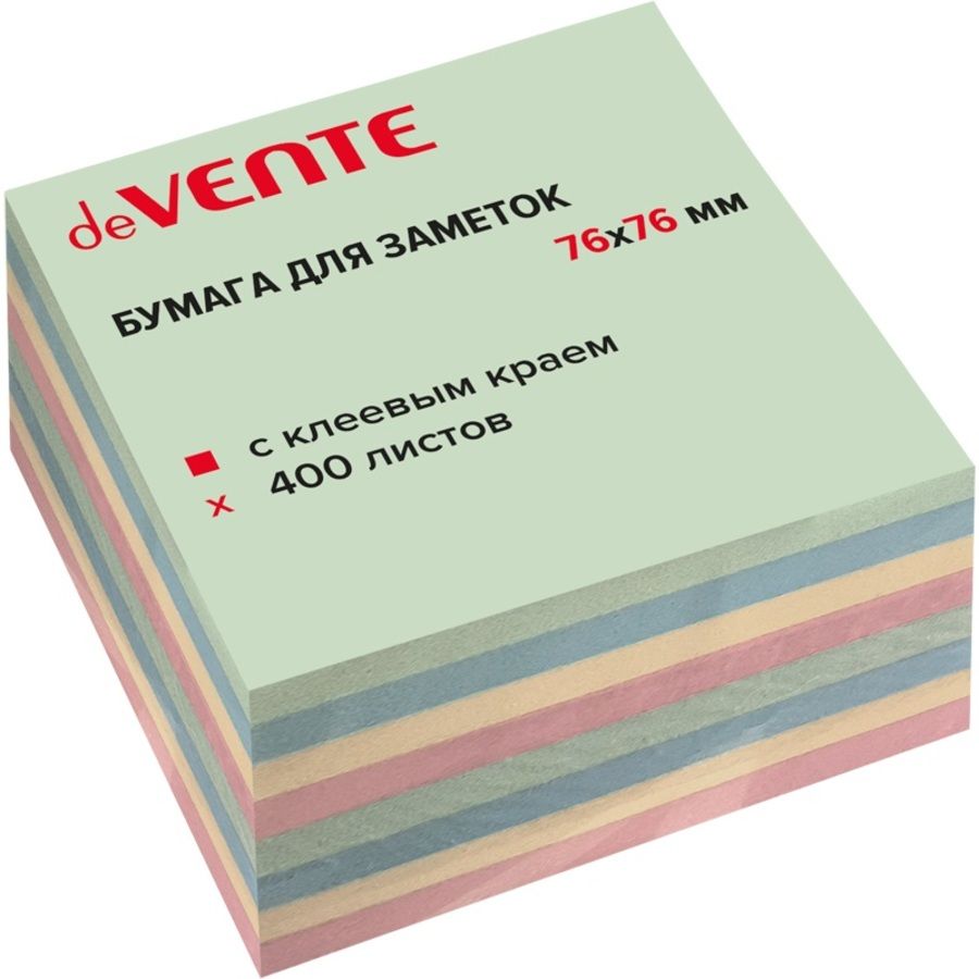 Клейкая бумага для заметок "deVENTE" 76x76 мм, 400 листов, офсет 75 г/м², 4 пастельных цвета, 8 слоев