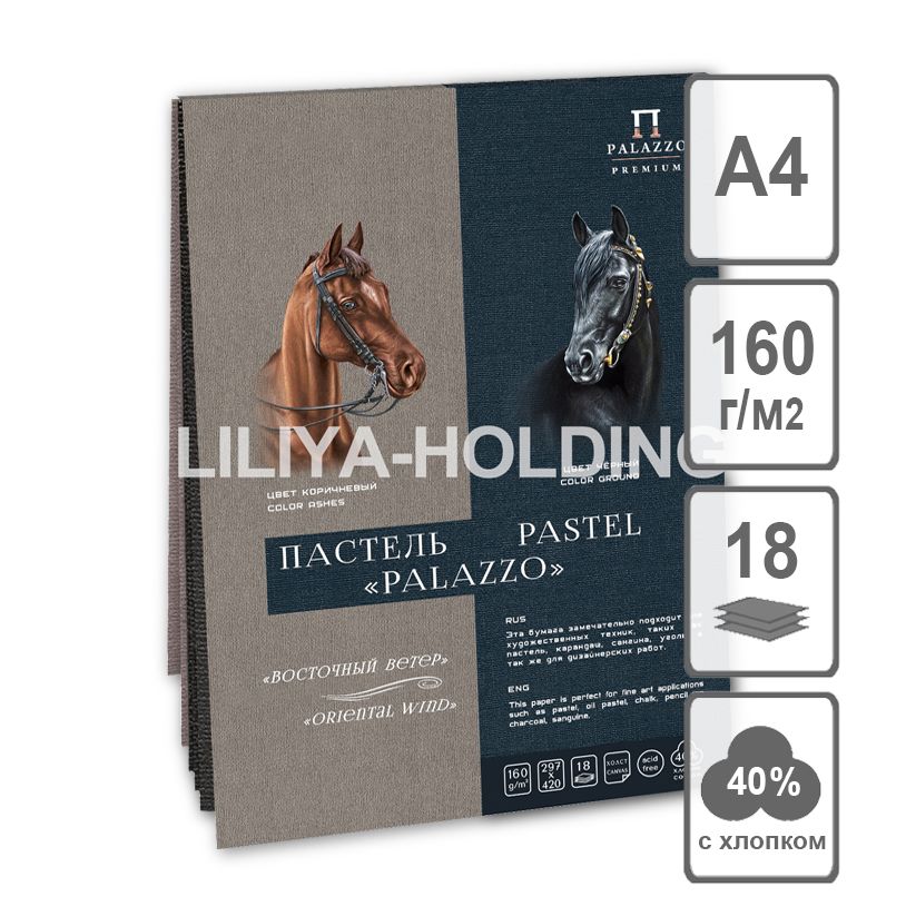 Планшет для пастели "Восточный ветер", 210*297 мм, 160 г/м2, 40% хлопок, 2 цвета (9л. цвет "Ground", 9л. цвет "Ashes"), 18 листов Palazzo - окрашенная в массе цветная бумага, плотностью 160 г/м2, состоит из 40% хлопкового волокна и имеет тиснение «Холст» с одной стороны. Подходит для различных типов изобразительного искусства (пастель, уголь, сепия, сангина, карандаш, даже акварельные краски и гуашь). Качественная структура бумаги гарантирует сохранность работ. Многократное при этом наложение пастельных материалов друг на друга не сказывается отрицательно на стабильности красочного слоя. Может быть использована для дизайнерских работ (скручивание, резка, склеивание, создание карт, декупаж, скрапбукинг).