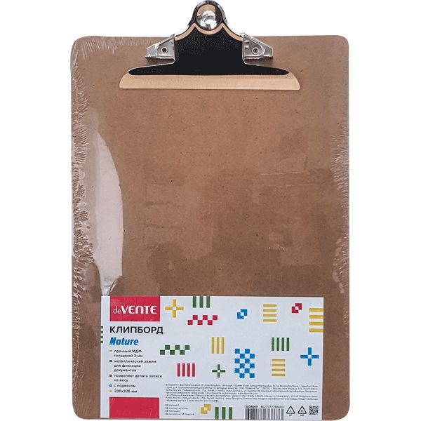 Клипборд "deVENTE. Nature" A4 (230x326 мм) МДФ толщиной 3 мм, без покрытия, усиленный прижим бабочка шириной 14,5 см, в пластиковом пакете, натуральный коричневый.