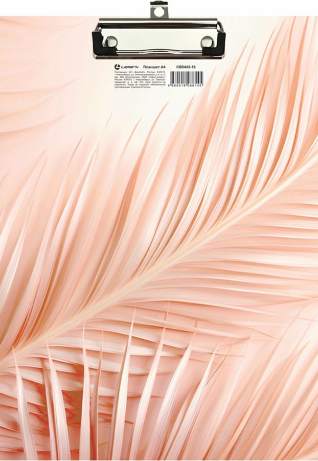 Планшет Lamark c верхним металлическим зажимом выполнен из плотного картона толщиной 2 мм, оклеенного бумагой с ярким принтом "Нежность" с двух сторон. Глянцевая ламинация. Для документов формата А4. Механизм: еврофурнитура, зажим с европодвесом, с пластмассовыми уголками. Удобно работать с документами/зарисовками на весу. Широкое применение: для выступлений, докладов; для работы на конференциях, корпоративных мероприятиях, выставках; для работников склада, экспедиторов, торговых представителей.