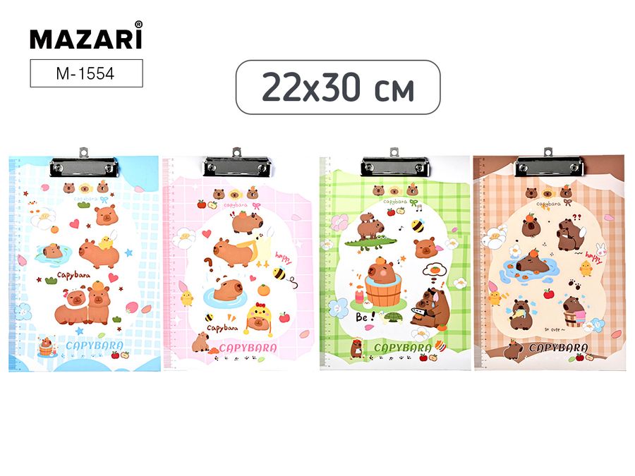 Планшет с верхним прижимом КАПИБАРА, 22х30 см, с линейкой, ОПП-упаковка
