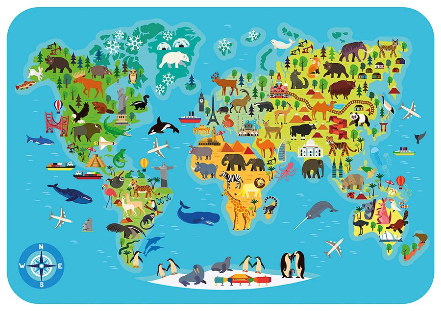 Настольное покрытие для лепки 330/230 (50) (НПД-11, КАРТА МИРА С ЖИВОТНЫМИ 2023)