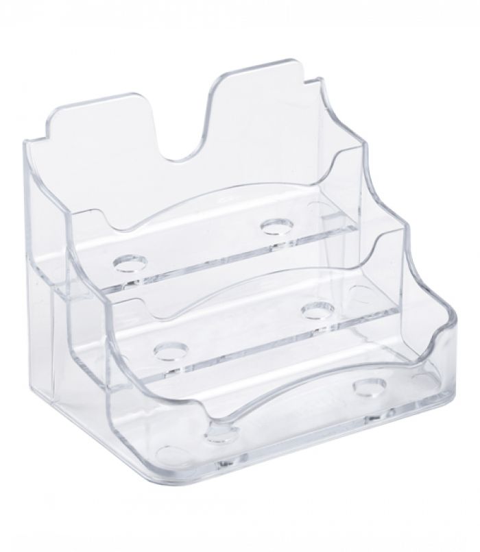 Подставка под визитки имеет 3 отделения, расположенных каскадом. Ширина отделений: 1х25мм и 2х20мм Эргономичный дизайн, закругленные углы. Гладкая, полированная поверхность. Устойчивая, легкая, прочная. Материал: полистирол.