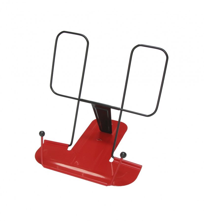 Подставка для книг из прочного металла, несколько уровней наклона, цвет красный. Благодаря износостойкому покрытию, подставка будет оставаться в хорошем состоянии долгое время. Держатель, расположенный в нижней части, надежно фиксирует страницы. Упаковка — блистер, европодвес.