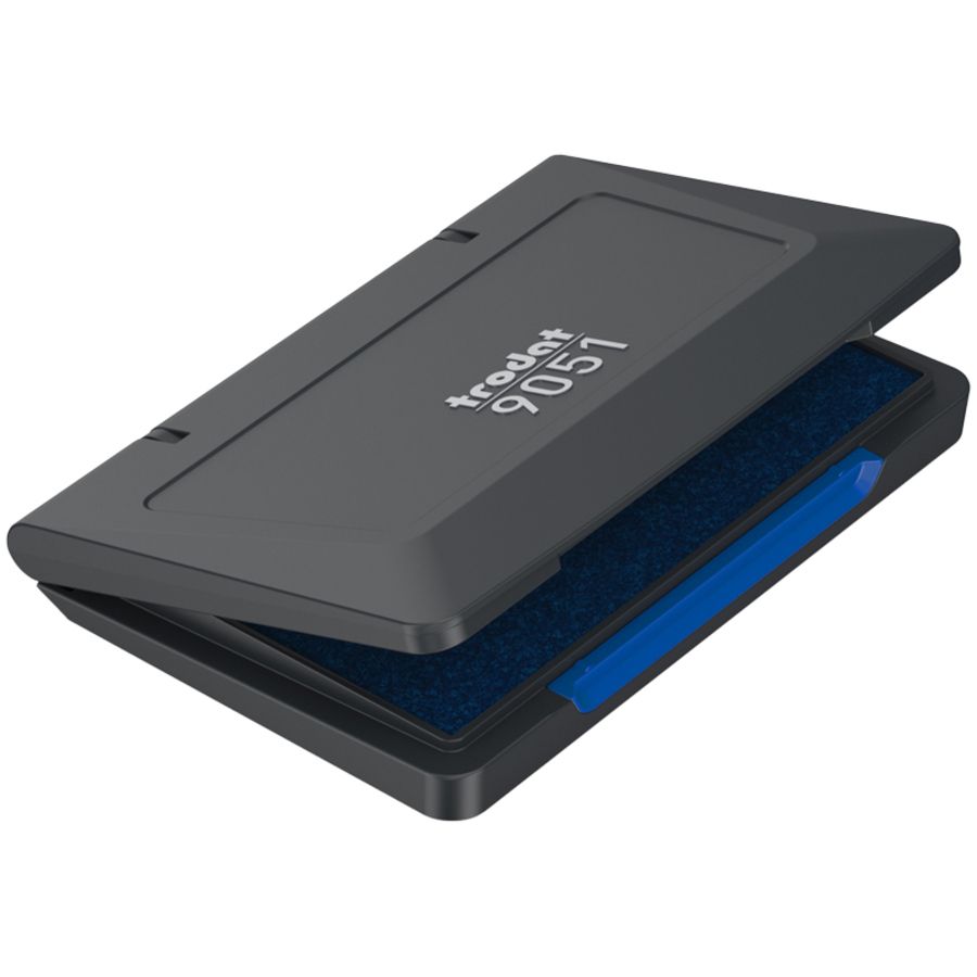 Применяется для штампов и печатей на ручной оснастке. Штемпельная подушка заправлена синими чернилами на водной основе. Крышка пластикового корпуса коробочки закрывается плотно, препятствуя испарению влаги. Размеры подушки - 90х50 мм.