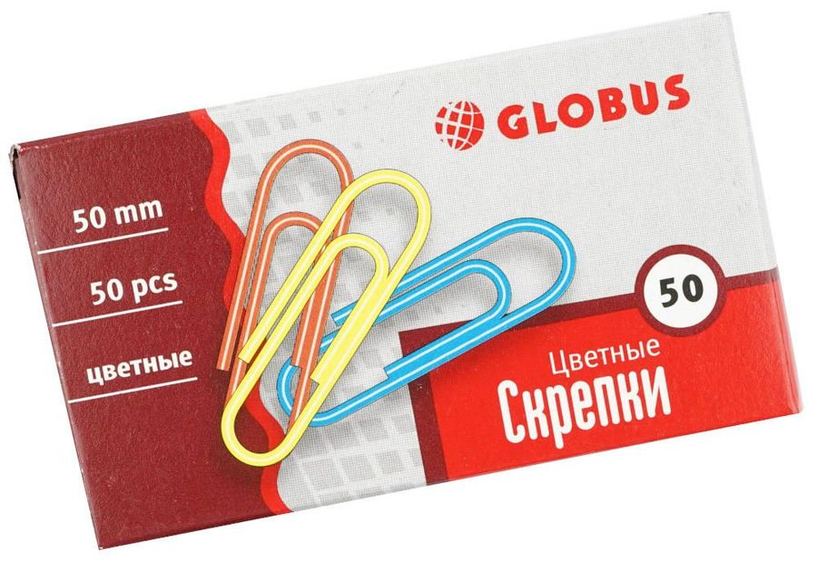 Скрепки 50мм 50 штук цветные гладкие карт.кор. С50-50 П