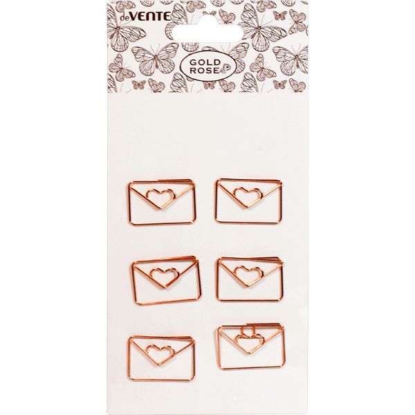 Скрепки металлические "deVENTE. Gold Rose. Envelope" розовое золото 33x23 мм, 6 шт в картонном блистере