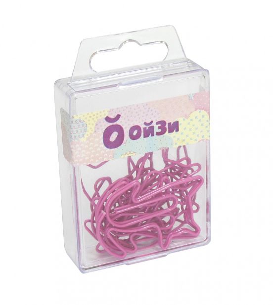Фигурные канцелярские скрепки-кошка цветные. Длина 45 мм. Прочно скрепляют бумагу и не повреждают ее. В удобном евробоксе 12 скрепок. Цвет розовый