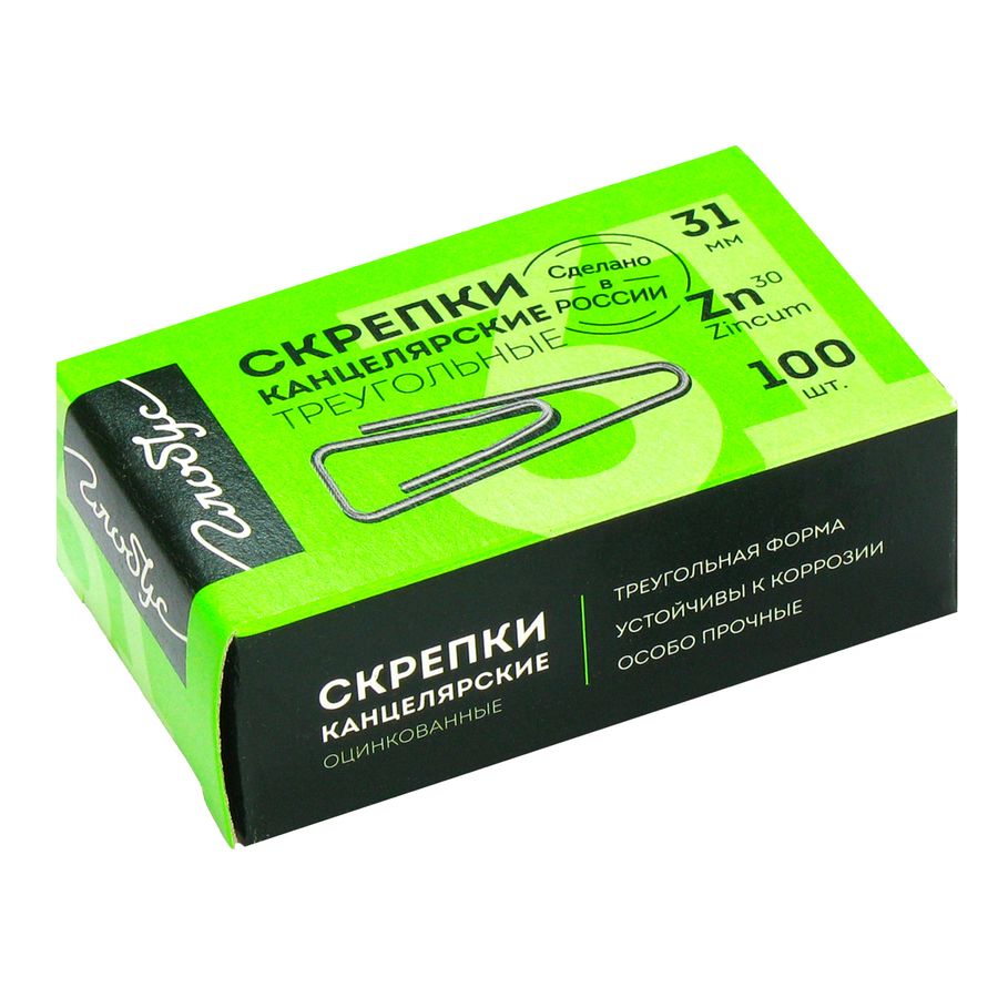 Скрепки канцелярские, гладкие с цинковым покрытием, с загнутым краем. Выполнены из качественной стали, имеют размер 31 мм, надежно скрепляют документы, не повреждая бумагу.